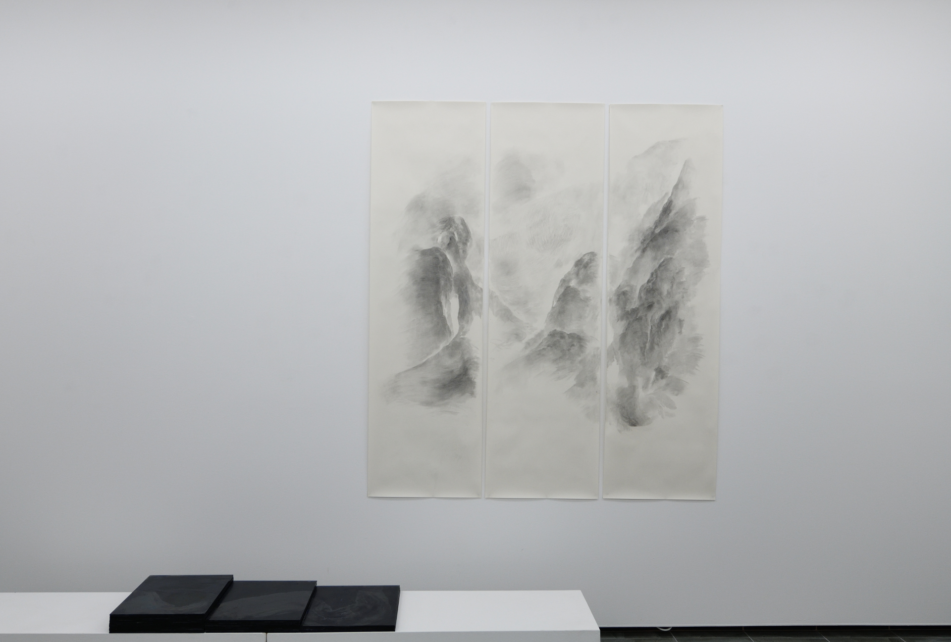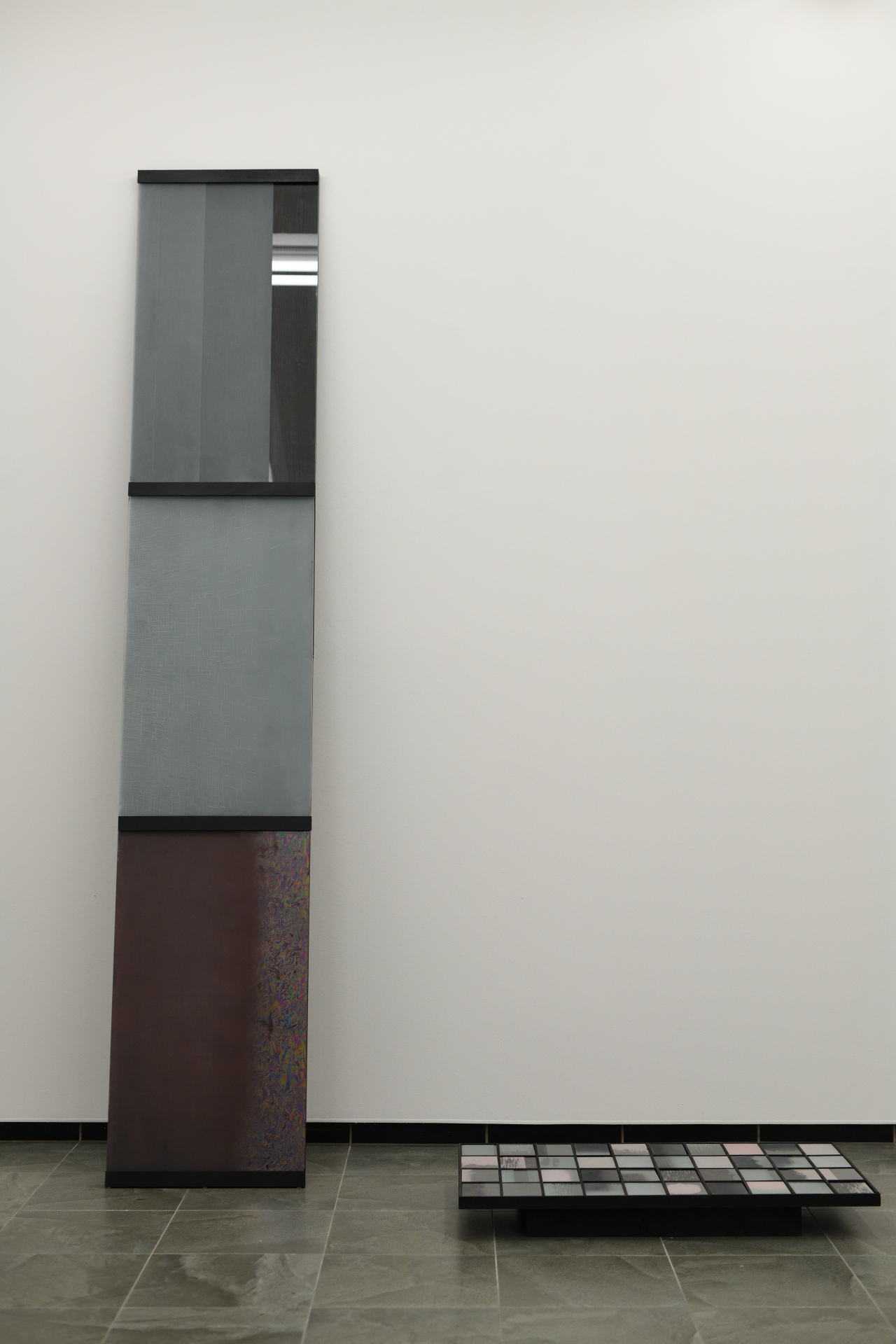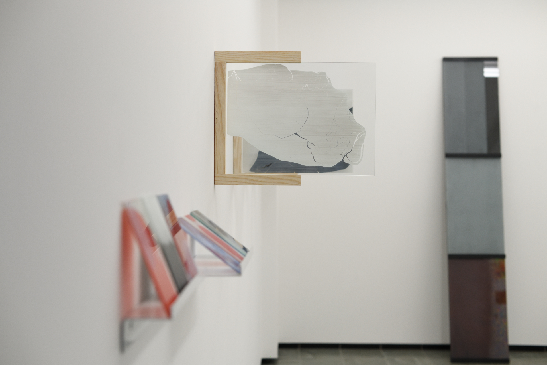 Výstava Cez vrstvy prezentuje prácu piatich študentov Vysokej školy výtvarných umení, ktorých spája jeden technologický predmet ateliéru Sklo – maľba na skle. Ambíciou výstavy je nielen odprezentovať autorské pohľady jednotlivých umelcov, ale ponúknuť aj širší náhľad do problematiky a súčasných možností maľby na sklo. Táto sféra je vo svete umenia stále tak trochu bezdomovcom. Dvojdomosť maľby na skle vychádza z pozície medzi užitým a voľným. Jej korene môžeme hľadať v oblasti dekoru, avšak priestor, ktorý sa tu postupne vytvára, už patrí voľnému umeniu. Tabuľa skla ako podklad a sklárske farby, ktoré treba vypaľovať, prinášajú problémy – a teda aj možnosti riešenia, ktoré sú veľmi špecifické, originálne a inovatívne. Treba myslieť v jednotlivých vrstvách, vedieť si predstaviť ich sčítavanie alebo prekrývanie. Do hry tu vstupuje aj svetlo, lesk, mat, transparentnosť a samotná hmota skla. Trpezlivosť a cit pre materiál sú nevyhnutné. V rámci slovenského kontextu nadväzujeme na väčšie výstavné projekty Vedieť, vidieť, ma- ľovať / Sklo ako plátno (Galéria Médium, 2017), New Glass Folder (Oravská galéria, 2019) a Obraz ako topografia krajiny (Galéria Miloša Alexandra Bazovského, 2023). Špecifickosťou výstavy Cez vrstvy je zameranie autorov a autoriek predovšetkým na médium a tech nológiu, ktorá sa stáva podnetom pre tému. Povedané inak – fascinácia výtvarným problémom generuje obsah alebo sa ním priamo stáva. V diele Martina Drusku môžeme vidieť abstraktnú maľbu, hru s lesklým, premen livým a matným, opieskovaným povrchom. Predovšetkým nás však upozorňuje na hmotu skla, kde sa brus – tradičná technológia dekorovania skla – mení na kresbový zásah do hmoty. Vanesa Šamajová využíva vrstvenie, viditeľnú stopu štetca, jeho štruktúry a rôzne fázy schnutia sklárskej farby. Niekedy do svojich malieb zasahuje prstom, tvoriac tak gesto dotyku a vymazávania. Toto gesto opakuje v sadrových odliatkoch, v ktorých rovnako ako pri maľbách, zachytáva krehký moment medzi suchým a mokrým. Klára Mária Švorcová ťaží z transparentnosti skla a z faktu, že tabuľa má vždy dve strany, teda aj dve plochy na spracovanie. Tiež využíva grafickú stránku sklárskej farby, do ktorej je možné po vysušení (ale ešte pred výpalom) škrabať, a tým de facto kresliť. Takto nám vzniká hra s pozitívom a negatívom aj svetlom a tieňom. Sofia Tokošová je jediná zo skupiny, ktorá študuje primárne v ateliéri maľby, preto je jej prístup k médiu ovplyvnený touto skúsenosťou. Vo svojich dielach hľadá prepojenie s inými materiálmi, najmä s papierom a plátnom. V štruktúrach, ktoré vychádzajú z prírody a tieňov, hľadá polohu medzi konkrétnym a abstraktným, často používajúc veľmi jasné, až „toxické“ farby. Lucia Kupcová vo svojom diele vychádza z postupne zbieraných skíc rieky. Snaží sa o zachytenie jej toku, premenlivosti, nestálosti. „Jednotlivé kresby už nefungujú ako samo statné záznamy konkrétneho momentu, ale ako súčasť súvislého celku. Čiastočná nepriehľadnosť zároveň zdôrazňuje napätie medzi odhalením a skrytím.“ Sklenený objekt je v tomto prípade doplnený o kresbu na papieri, čím sa tvorí dialóg medzi médiami, časovosťou kresby a záznamu. Naše nadšenie pre toto médium podnecuje vidina možnosti niečoho nového, inšpiratívneho, jedinečného. Istým spôsobom je to stále terra incognita – maľba na sklo je rovnako lákavá a dobrodružná ako výpravy do neznámej zeme.